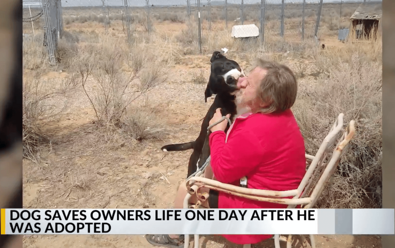 One day after being adopted, Peanut leaps (licks) to the rescue and saves his new papa’s life! Good boy, Peanut!